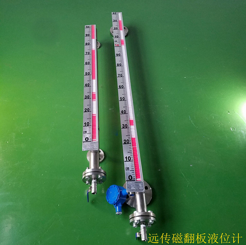根據(jù)浮力原理和磁性耦合作用研制而成。當(dāng)被測(cè)容器中的液位升降時(shí),液位計(jì)本體管中的磁性浮子也隨之升降,浮子內(nèi)的永久磁鋼通過磁耦合傳遞到磁翻柱指示器,驅(qū)動(dòng)紅、白翻柱翻轉(zhuǎn),當(dāng)液位上升時(shí)翻柱由白色轉(zhuǎn)變?yōu)榧t色,當(dāng)液位下降時(shí)翻柱由紅色轉(zhuǎn)變?yōu)榘咨?,指示器的紅白交界處為容器內(nèi)部液位的實(shí)際高度,從而實(shí)現(xiàn)液位清晰的指示。