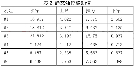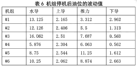 表 6 機(jī)組停機(jī)后油位的波動(dòng)值