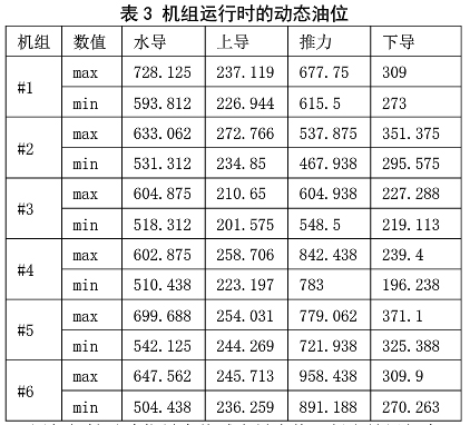 表 3 機(jī)組運(yùn)行時(shí)的動(dòng)態(tài)油位