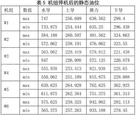 表 5 機(jī)組停機(jī)后的靜態(tài)油位